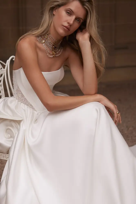 Bei Perlenweiss erwartet Sie eine vielseitige Auswahl an Brautmode, die von der klassischen A-Linie über voluminöse Prinzessinnenkleider bis hin zu verträumten Vintage-Brautkleidern reichen. Bei Ihrer Anprobe können Sie verschiedene Stilrichtungen und Schnitte anprobieren, um Ihr individuelles Traumkleid zu finden. So finden Sie in einer einzigartigen und exklusiven Atmosphäre Ihr perfektes Hochzeitskleid in Königsbrunn nähe Augsburg.